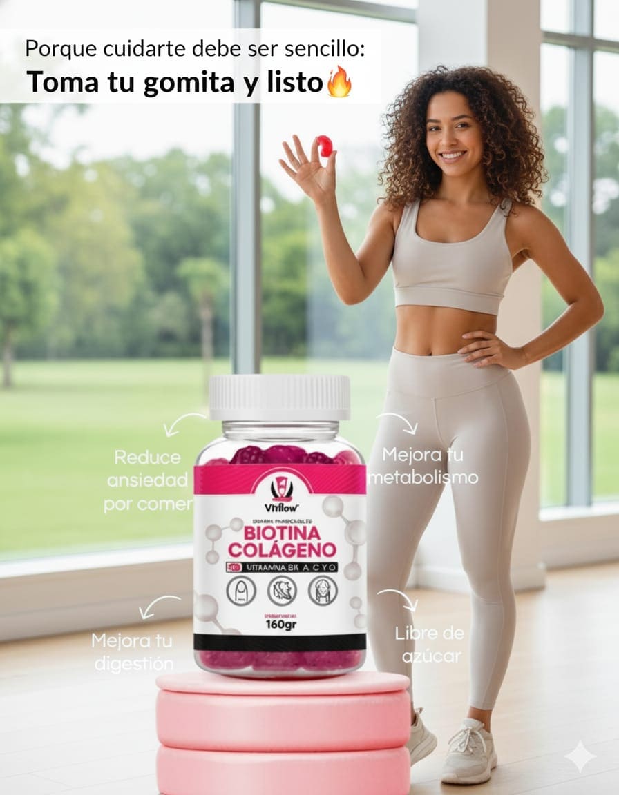 Redescubre tu brillo natural con Biotina + Colágeno: el suplemento que transforma tu rutina en un momento de bienestar, fortaleciendo tu cabello, piel y uñas desde adentro.